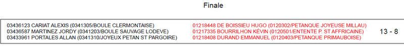 Ceci dit le concours Jeunes a réussi à réunir près de 50 triplettes. Quand on constate que cette année, certains Nationaux n'ont pas réussi a dépasser les 40 triplettes, les organisateurs du Festival de Millau en catégorie Jeunes n'ont pas a rougir. Ils ont réussi a faire déplacer des jeunes venant de Bretagne, PACA, Île de France, Aquitaine, Auvergne, Midi-Pyrénées, Languedoc Roussillon, etc.