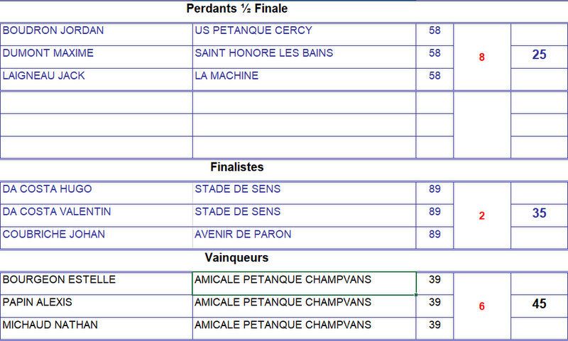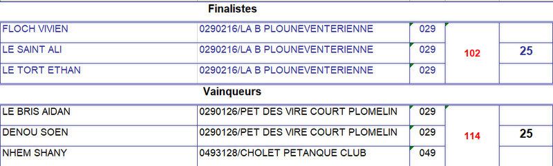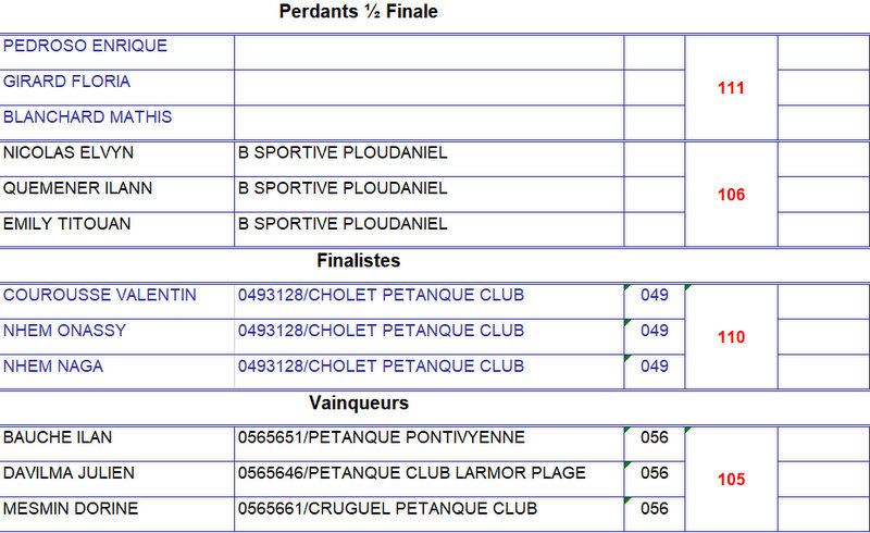 Pour le concours de PLOMELIN la catégorie Junior a été annulée. Pour le National de Migennes, la catégorie Junior n'a pas fait de concours "B", et la finale des Minimes en concours "B" ne s'est pas disputée !?!?