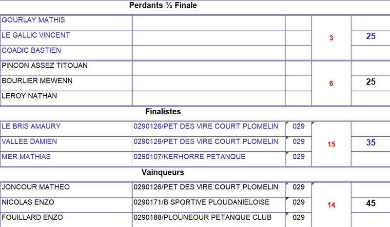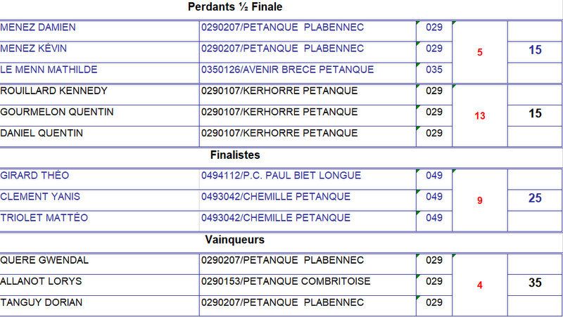ATTENTION !!! Il y a une inversion dans les Résultats de la FINALE …