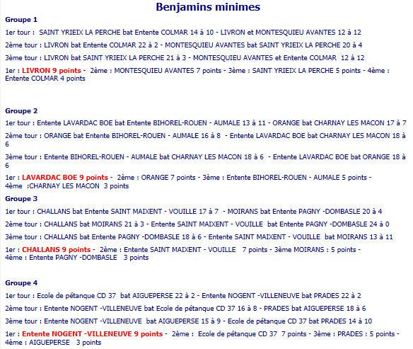 Le 6ième championnat national des clubs jeunes a vu la victoire de l’équipe de la Miniboule Laurentine, après avoir affronté 5 équipes venues du Bas Rhin, du Lot et Garonne, de l’Aveyron, de la Drome et enfin des Deux-Sèvres.