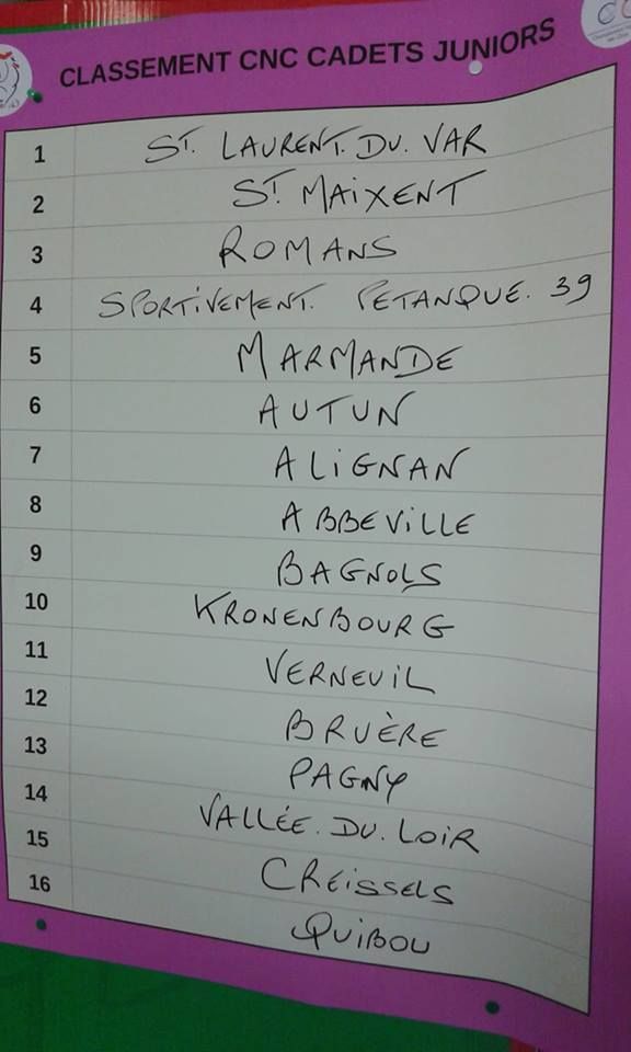 La session de rattrapage a été réussi … Après avoir chuté, en Championnats Départementaux, et Régionaux, la Triplette Cadette de la Boule Laurentine a passé les épreuves du CNC avec la mention Très Bien, en remportant le graal. Pour faire un parallèle sur l'expression de Jean-Claude CALCAGNO "Le Coach" quand il cite la ligne d'arrivée, et Alain Prost, j'ajouterais :"C'est quand on passe la ligne d'arrivée que l'on fait les comptes" ...