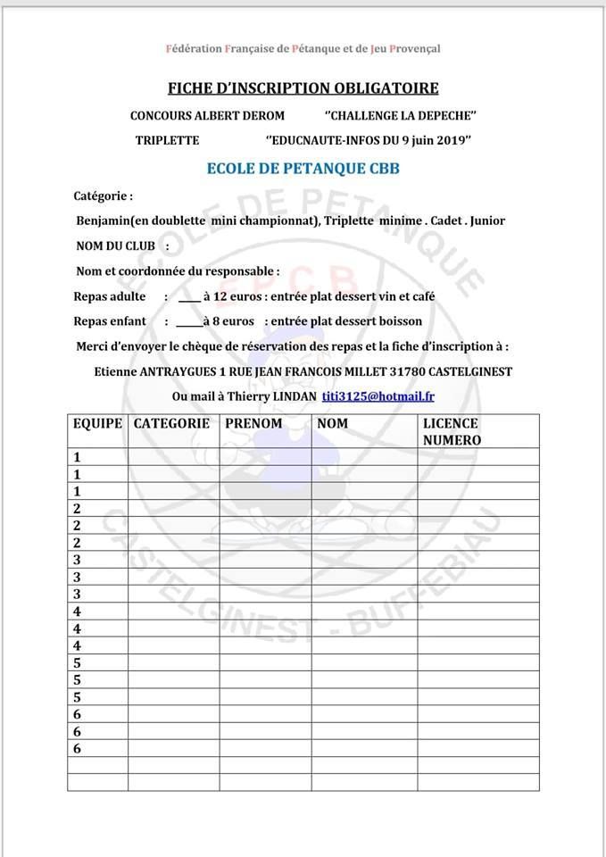Pour TOUTES INSCRIPTIONS, veuillez bien contacter Thierry LINDAN.